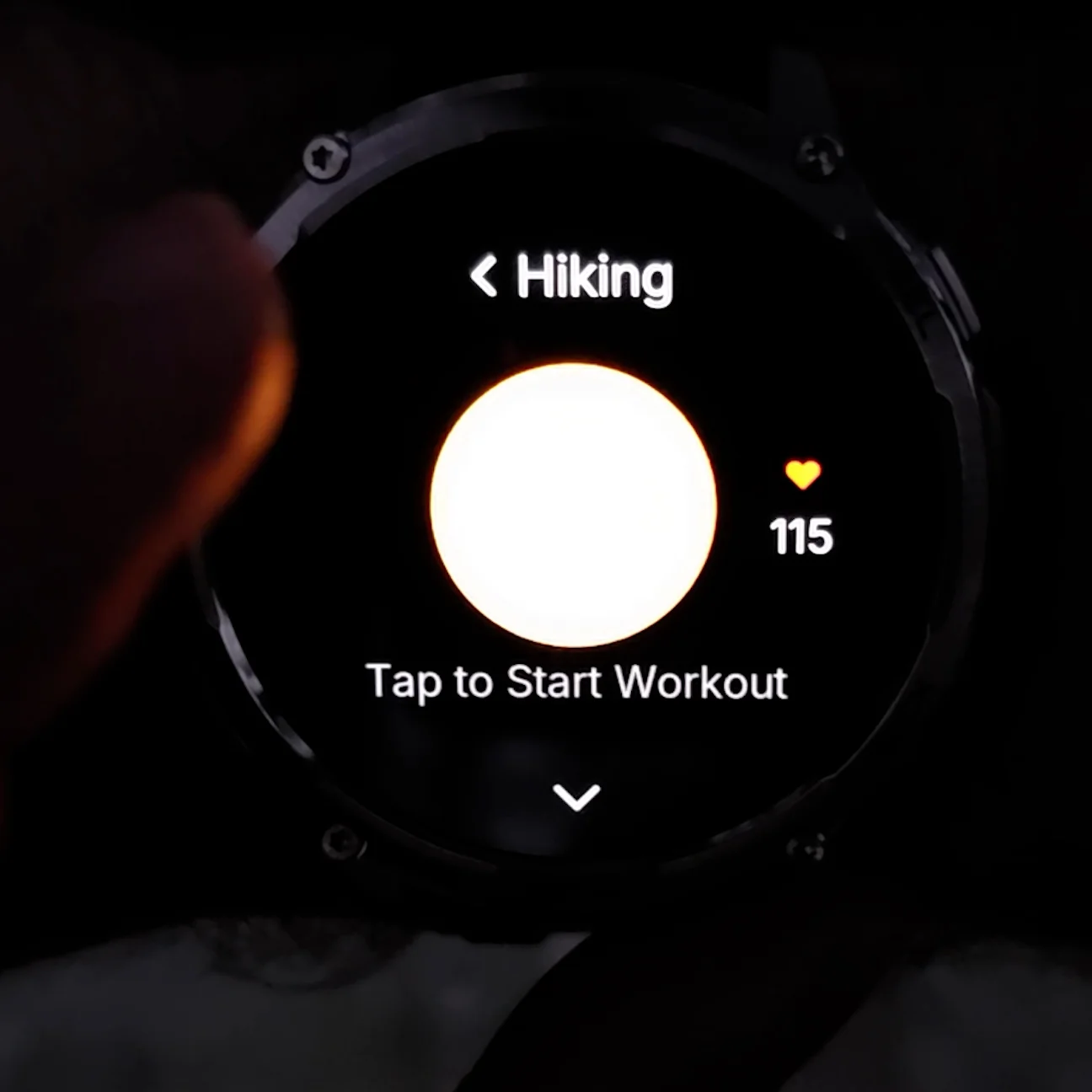 The AMOLED display is bright, easy to read outdoors, and tops out around 1,000 nits, which makes a big difference on hikes and job sites.