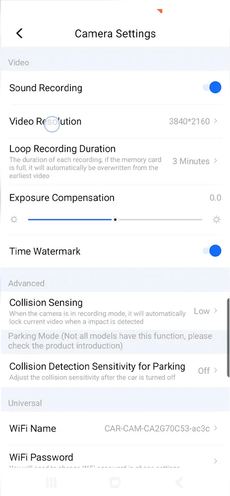 The first time you launch it, you’ll connect to the dash cam’s Wi-Fi network using the default password of 12345678. Just keep in mind that while you’re connected to the dash cam, your phone won’t have cellular data.