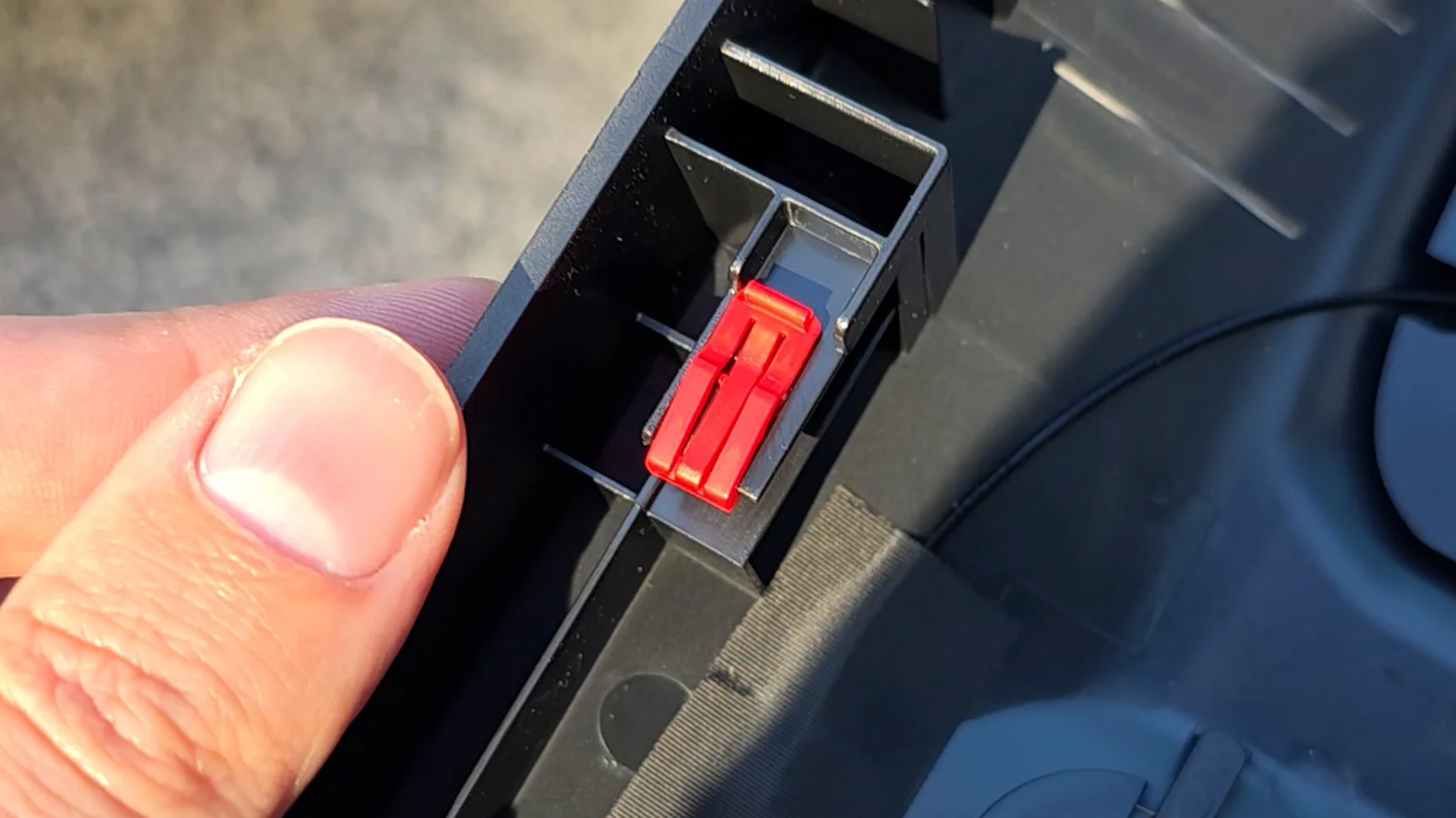 The only thing we need to transfer from the old shroud are these two fasteners, mine are red, yours may be different. I found it easiest to gently pull them from both sides to avoid breaking them. Then simply slide them onto the new shroud.